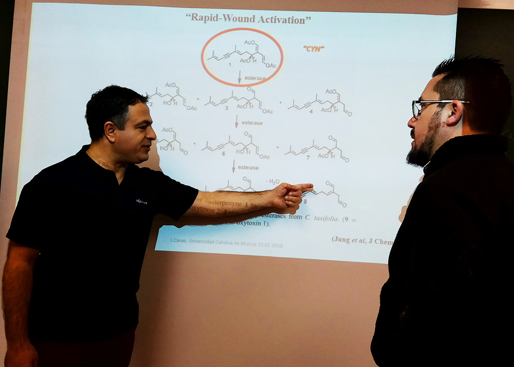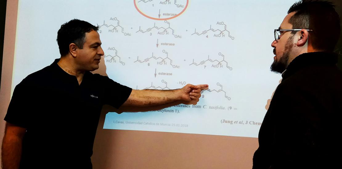Aprovechando su estancia en Murcia, el investigador Dr. Levent Cavas, ha ofrecido hoy la conferencia ‘Biotechnological perspectives on evaluation of invasive marine seaweeds’, en la que ha mostrado las líneas maestras de la investigación. Para Cavas, la elección de la Universidad Católica de Murcia para este proyecto fue motivada “por las publicaciones de sus investigadores en el campo de la bioinformática. Estoy muy contento por trabajar con Horacio Pérez y su equipo”.