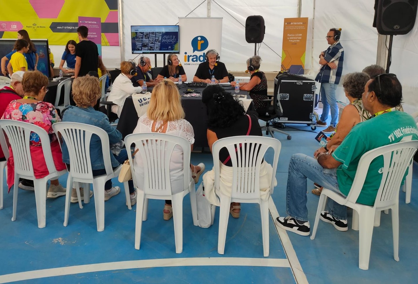 Los alumnos de la radio universitaria de la UCAM, iradioUCAM, en colaboración con un grupo de mayores participantes en el Taller de Radio de la Fundación La Caixa de Murcia, han realizado demostraciones radiofónicas en el marco del II Encuentro Tecnológico eXPeriencia 6.0, un evento dirigido a mayores de 60 años que se ha celebrado en el Campus Universitario de Lorca. Esta actividad muestra los resultados del proyecto de investigación ‘La radio como herramienta para combatir el edadismo y fomentar la participación social activa de las personas mayores’, fruto de un convenio de colaboración entre la Fundación La Caixa y la Universidad Católica de Murcia para el desarrollo.