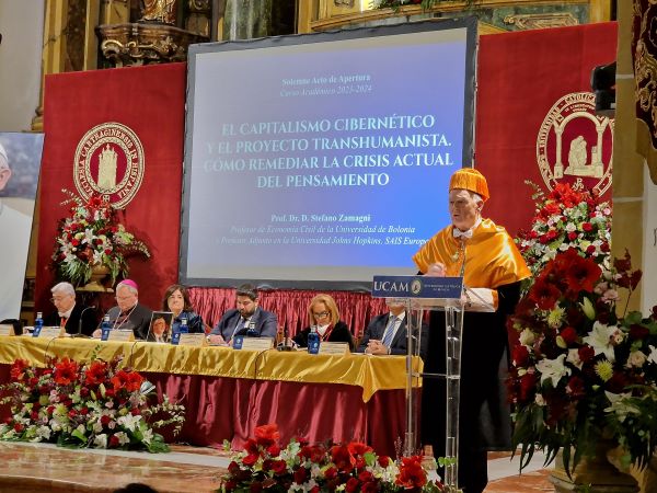 “La vida se nos escapa entre las manos. Hagamos que no sea como la arena, sino como la semilla”, ha afirmado en su Lección Inaugural Stefano Zamagni, profesor de la Universidad de Bolonia y profesor adjunto de la Universidad Johns Hopkins (SAIS Europa), poniendo como ejemplo a José Luis Mendoza, y su obra, la UCAM, como institución de transformación. El prestigioso economista ha disertado sobre el devenir transhumanista, lanzando la propuesta de remediarlo desde el neohumanismo.