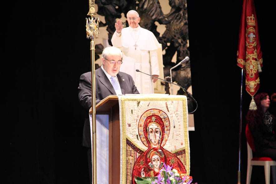 El Pregonero hizo también mención del tiempo de Cuaresma sobre el que afirmó que “no es un tiempo litúrgico más, sino un camino de preparación que nos lleva a vivir intensamente el misterio central de nuestra fe, es decir, la Pasión, Muerte y Resurrección de Nuestro Señor Jesucristo; es por tanto un camino que nos conduce a vivir la Pascua de Resurrección, fuente de vida para los cristianos”. “Dios nos invita a no dejarnos arrastrar por una sociedad que vive en un profundo “relativismo moral” y en la que todo vale; porque es mentira que la felicidad esté en tener dinero o poder. Mirad, hermanos, que el yugo del demonio es un infierno y el yugo del mundo una carga pesada.