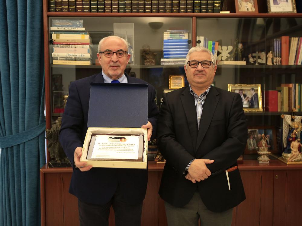El presidente de la UCAM, José Luis Mendoza, ha sido nombrado socio de honor de la Sociedad Española de Medicina del Deporte (SEMEDE) por su amplia trayectoria de apoyo a esta disciplina. El presidente recibió este reconocimiento de manos de Pedro Manonelles, expresidente de la institución y miembro de la junta de gobierno.