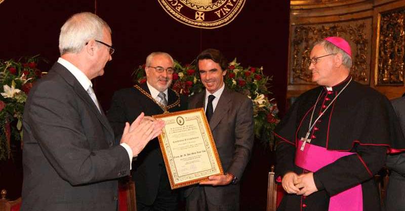El ex presidente del Gobierno, y presidente de la FAES, recibió el nombramiento de catedrático extraordinario de Ética Política y Humanidades