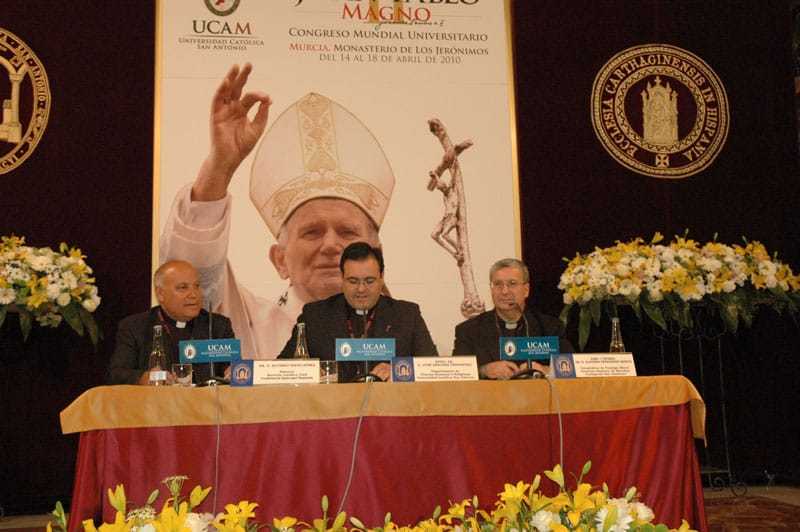 El cardenal Stanislaw Rylko tituló su conferencia ‘Juan Pablo II: el Papa llamado a introducir a la Iglesia en el Tercer Milenio’. El purpurado, afirmó que “en un mundo que idolatra la forma física y la eterna juventud, que persigue la eficiencia y el éxito, Juan Pablo II, con valentía, puso ante los ojos de todos, su vejez, su enfermedad, su sufrimiento”. Sobre el pontificado del Papa Wojtyla, el cardenal Rylko aseveró que estuvo cargado de eventos que “han marcado profundamente la vida de la Iglesia y han influido de modo determinante sobre los acontecimientos mundiales”, matizó. También dedicó un momento de su ponencia a la relación del Papa con los jóvenes. “Una de las grandes prioridades de su ministerio pastoral fueron los jóvenes, con los que tuvo una relación vivísima desde el día de la inauguración de su pontificado”, aseguró el presidente del Consejo Pontificio para los laicos, y recordó las palabras del Papa a estos: “Vosotros sois el futuro del mundo, vosotros sois la esperanza de la Iglesia, vosotros sois mi esperanza”.