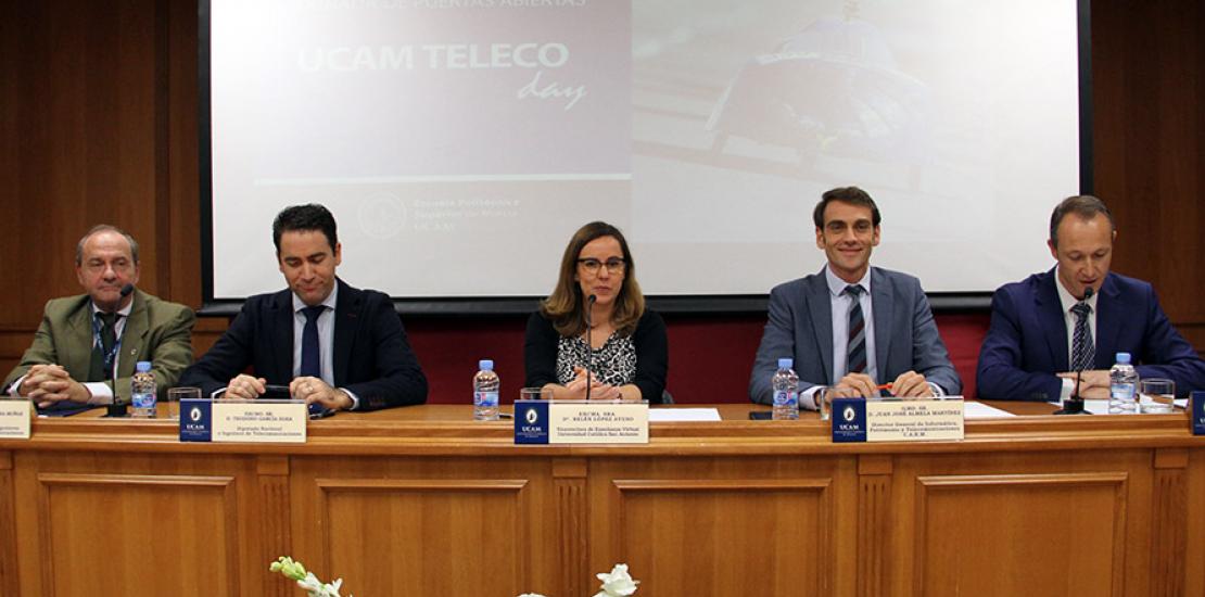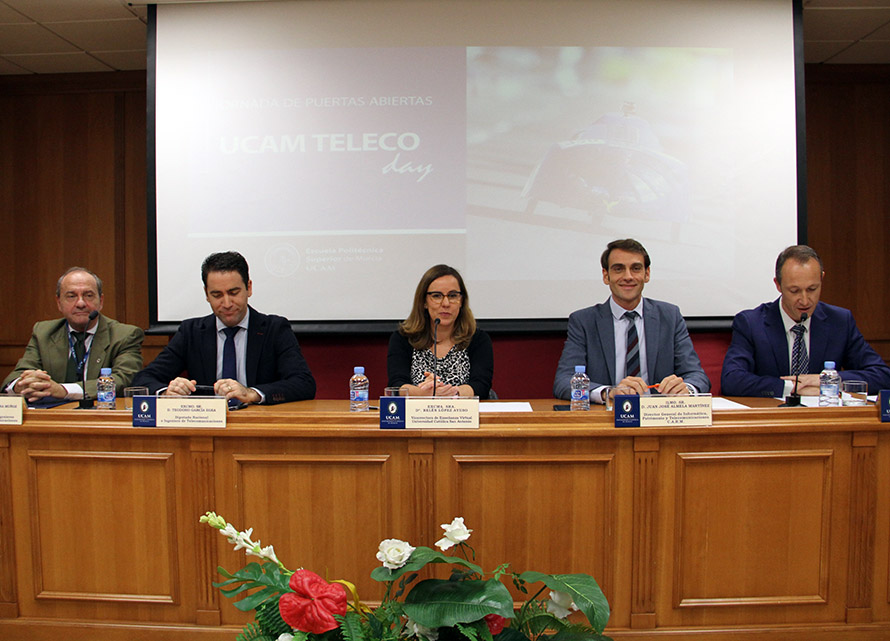 En el acto de apertura han participado diversos ponentes como Juan José Almela Martínez, director general de Informática, Patrimonio y Telecomunicaciones de la CARM; José Javier Medina Muñoz, decano del Colegio Oficial de Ingenieros Técnicos de Telecomunicaciones (COGITT); Rafael Melendreras Ruiz, vicedecano del Grado en Ingeniería en Sistemas de Telecomunicación; y Teodoro García Egea, ingeniero de Telecomunicaciones y diputado nacional. Cada uno de los participantes ha reflexionado acerca de diferentes titulaciones pero todos con un frente en común: acercar a los jóvenes a las tecnologías.