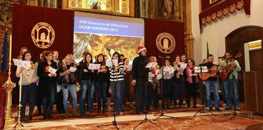 El Templo del Monasterio de Los Jerónimos acogió ayer la XVII Edición del Concurso de Villancicos en el que participó la comunidad universitaria de la UCAM. Además, durante la jornada de hoy se ha celebrado el I Encuentro Intercolegial de Villancicos en el que han participado los colegios San Vicente de Paúl de El Palmar, la Inmaculada de Yecla y Sagrado Corazón de Cartagena