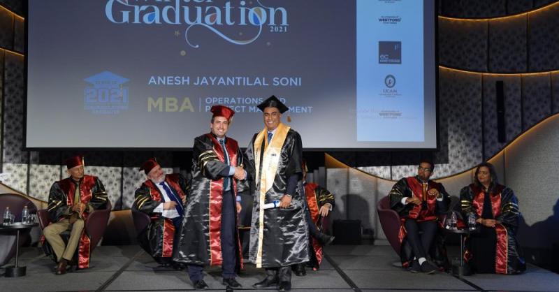 Durante su estancia en Dubái, la delegación de la UCAM ha asistido además a la graduación de su programa de postgrado en MBA y espacialidades, uno de los 30 que acredita, desde 2018, en el área de los negocios de Westford Education Group (formado por Exeed School of Business, Westford University College y Athena Global Education), cursados por más de 600 alumnos de más de 30 países.