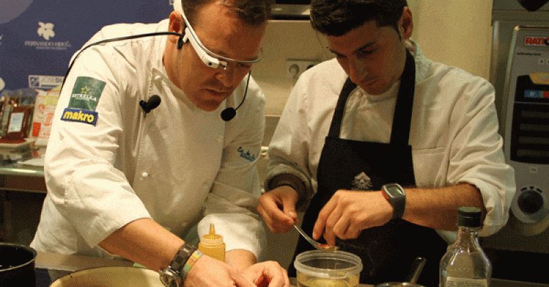 El ciclo ‘Cocinando entre Estrellas’, organizado por el Grado en Gastronomía de la Universidad Católica de Murcia en las instalaciones del Centro de Cualificación Turística de la Región de Murcia, ha tenido un broche de oro con la participación de Pablo González-Conejero, chef del Restaurante Cabaña Buenavista y acreedor de una Estrella Michelín. Como novedad en su intervención, González-Conejero utilizó las Google Glass con las que grabó en primera persona la elaboración del menú y su conferencia. “Es un avance para cualquier profesión, pues transmiten desde el punto de vista del protagonista a miles de kilómetros en tiempo real”, destacó el chef.