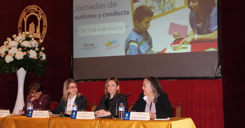 La UCAM y ASTRADE han organizado unas jornadas sobre autismo y conducta dirigidas a la divulgación y al intercambio de experiencias tanto entre los expertos como entre los estudiantes universitarios, con el objetivo de potenciar la formación de los futuros profesionales y mejorar su intervención con los niños que sufran este tipo de trastornos. “El autismo es un trastorno todavía abierto, con muchas posibilidades de investigación”, ha destacado Mª del Mar Pintado, vicedecana de los grados en Educación Infantil y Primaria de la Universidad Católica de Murcia.