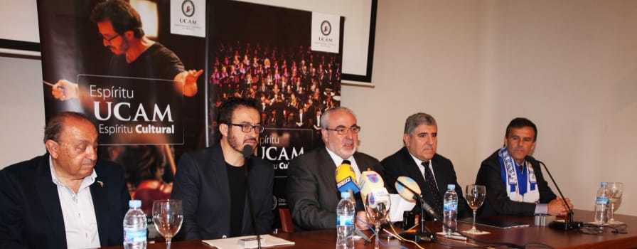 La Orquesta Sinfónica de la UCAM y la Coral Discantus presentaron en la mañana de este lunes, en el salón de actos del Real Casino de Murcia, los nuevos himnos que lucirán tanto los equipos deportivos de la Universidad Católica como el Montesinos Club Fútbol Sala Jumilla y el Real Murcia. En el caso del conjunto grana se trata de una reedición del tradicional, mientras que el equipo jumillano y la UCAM estrenarán acordes en sus respectivos compromisos deportivos.