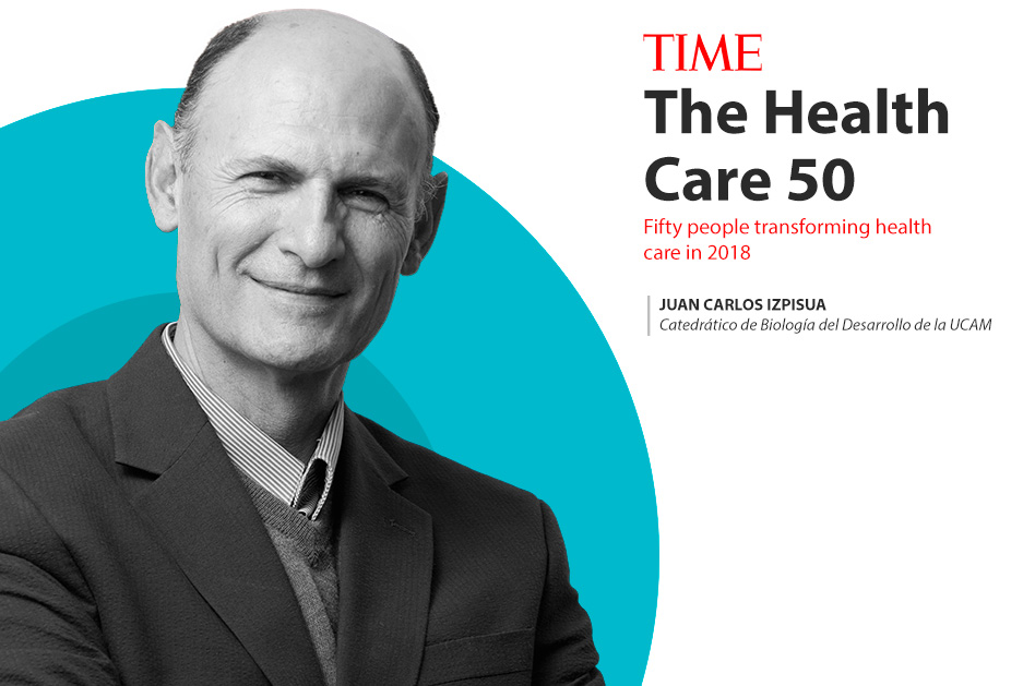 El investigador español Juan Carlos Izpisua, catedrático de Biología del Desarrollo de la Universidad Católica de Murcia y profesor en el Laboratorio de Expresión Génica del Salk Institute (La Jolla, EE.UU.) es un habitual en las publicaciones de las revista de mayor impacto científico mundial como Nature, Cell, Science gracias a sus pioneros avances. Fruto de todo ello, ahora, la revista TIME lo ha incluido como una de las 50 personas más influyentes del 2018 en el campo de cuidados de la salud. El motivo: sus innovaciones científicas para abordar el problema de la escasez de órganos humanos para trasplantes. Se trata del único español que forma parte de este destacado grupo. Esta lista, elaborada por los periodistas y editores de la publicación, reconoce la importante labor de las personas que están trabajando para mejorar el cuidado de la salud.