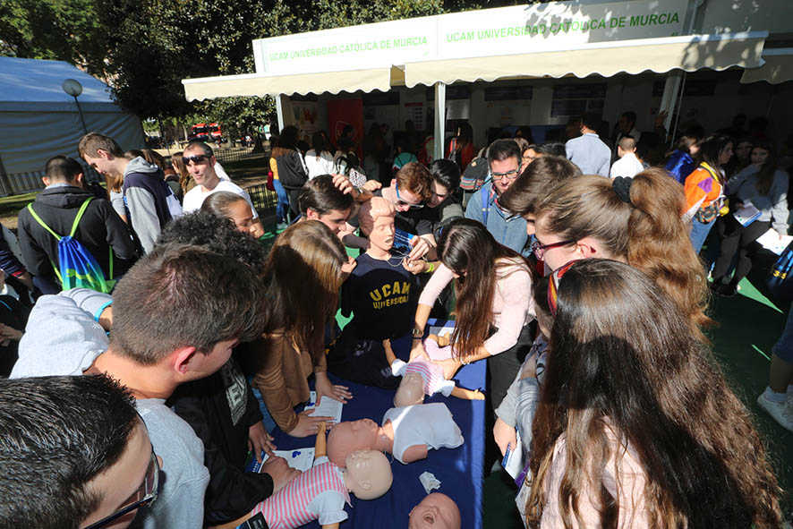 El Jardín del Malecón de Murcia acoge, un año más, esta iniciativa que, organizada por la Consejería de Industria, Turismo, Empresa e Innovación de la CARM y la Fundación Séneca, pone a disposición de públicos de todas las edades un sinfín de actividades en el área de la salud y el bienestar; la informática y las telecomunicaciones; los idiomas; el deporte; y la comunicación, entre otras ramas. Este año, como novedad, la UCAM ha preparado, a través del Grado en Telecomunicaciones y la Cátedra de eSports, actividades relacionadas con la realidad virtual y los deportes electrónicos, para que niños y adultos puedan vivir la experiencia de esta ‘inmersión multimedia’, a través de una demo con distintas aventuras.