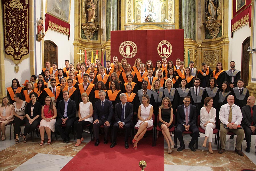 Hoy ha tenido lugar en el Monasterio de Los Jerónimos la graduación de la III promoción del Master's in European Union Studies and Human Rights, V promoción del Máster Oficial en Marketing y Comunicación, V promoción del MBA-Master in Business Administration y X promoción del Máster Oficial en Dirección de Empresas MBA. Durante el acto, Pablo Blesa, vicerrector de Relaciones Internacionales, decano de la Facultad de Comunicación y director del Master's in European Union Studies and Human Rights, ha destacado el sacrificio de todos los alumnos durante el curso y les ha motivado para que continúen esforzándose en sus futuros proyectos. De esta forma, la UCAM mantiene su fuerte apuesta por la internacionalización, ya que oferta seis grados y siete postgrados que se imparten íntegramente en inglés.