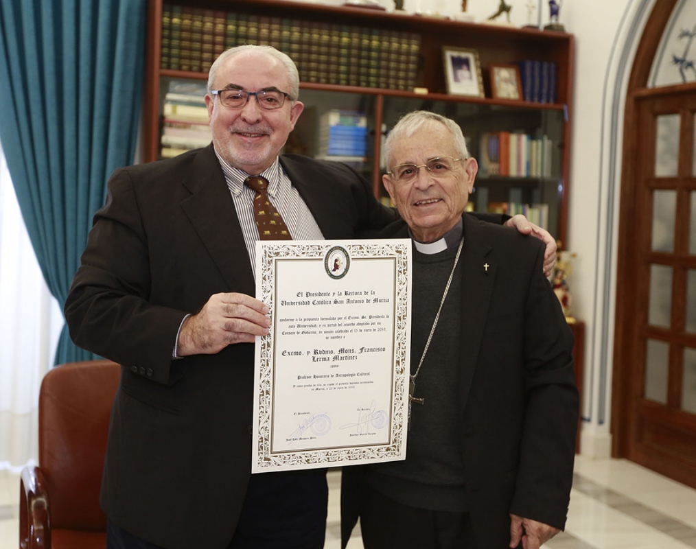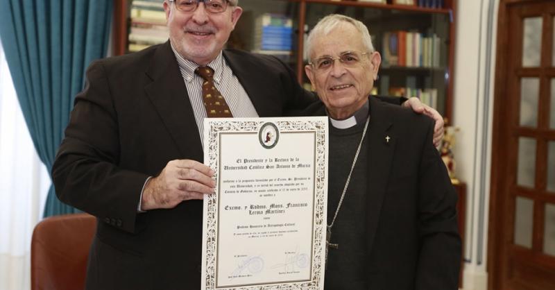 El presidente de la Universidad Católica de Murcia, José Luis Mendoza, ha nombrado profesor honorario de Antropología Social al murciano Francisco Lerma, obispo de Gurúè (Mozambique)
