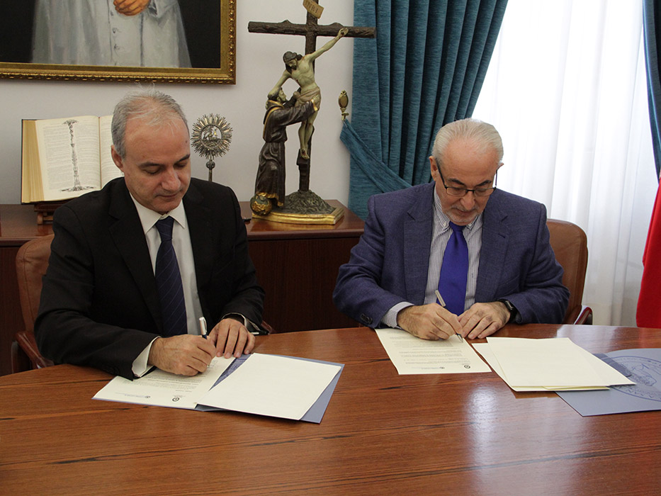 El convenio fue rubricado por José Luis Mendoza, presidente de la UCAM y Ricardo Gabaldón, presidente del Consejo General de Graduados Sociales