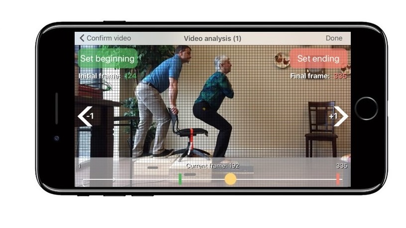 La aplicación analiza el gesto de levantarse de una silla mediante la grabación en vídeo a 240 imágenes por segundo. Tras observar el recorrido y el tiempo en el que se ha realizado, realiza unos cálculos automáticos que permiten al profesional conocer en tiempo real la potencia muscular generada, teniendo en cuenta que una disminución de la misma repercute en el nivel de dependencia de una persona.