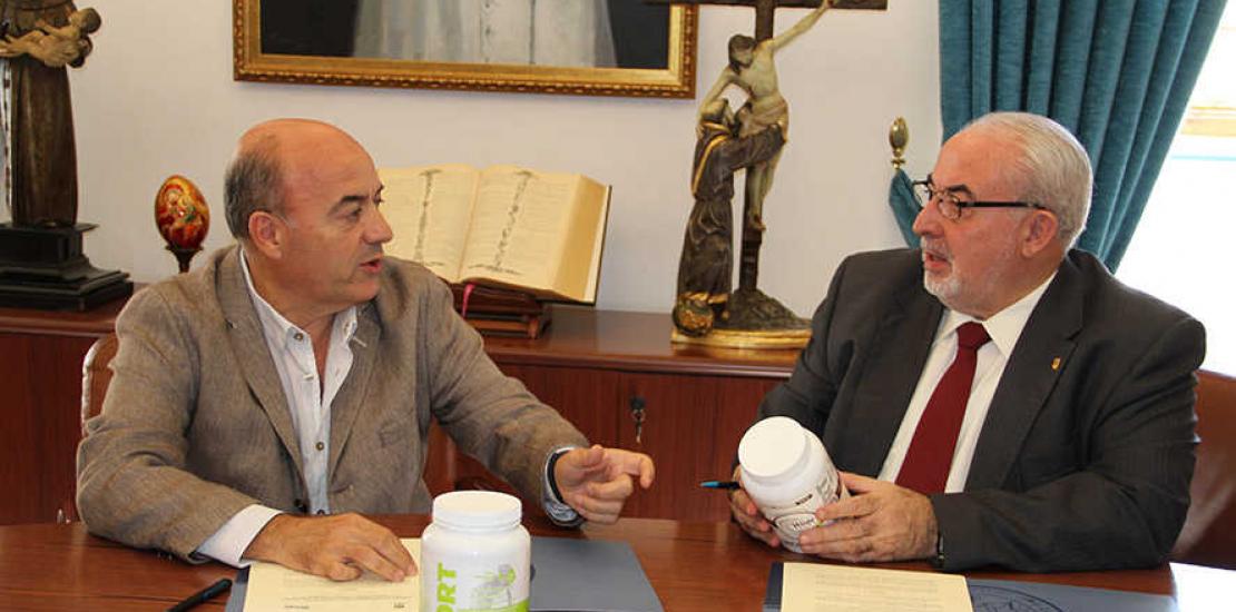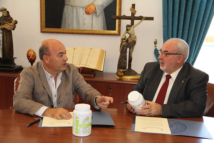 El acuerdo fue firmado por José Luis Mendoza, presidente de la UCAM, y por Constantino Valcárcel-Resalt, gerente de Mixsalt Laboratorios.
