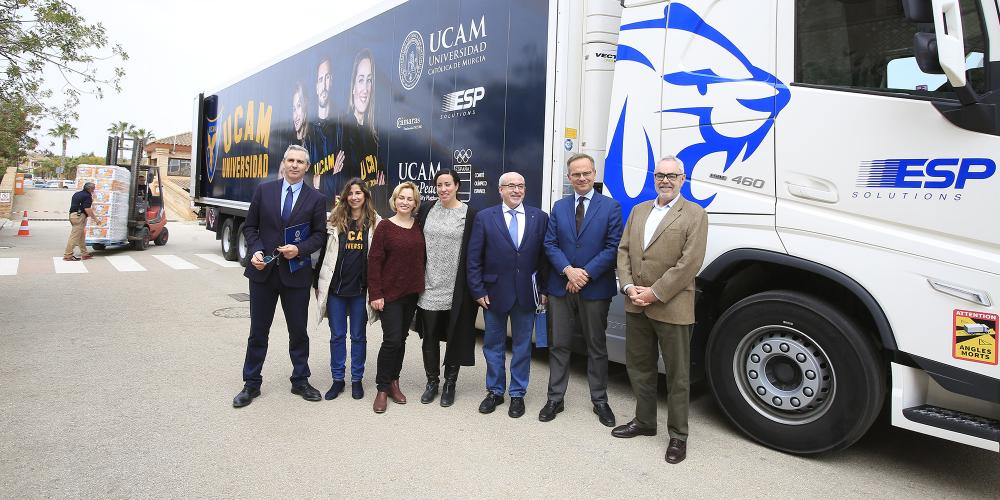 El Campus de Los Jerónimos, sede central de la UCAM, ha sido el punto de partida del segundo envío de ayuda humanitaria de la Plataforma Universitaria por la Paz de la UCAM para los damnificados por la guerra en Ucrania. Con el apoyo del Comité Olímpico Español y en colaboración con ESP Solutions, Marvimundo y Fundación INCYDE, este segundo tráiler se ha llenado de material de primera necesidad como alimentos enlatados, potitos, pañales, galletas, leche y productos de limpieza y aseo que son los que más se echan en falta sobre el terreno. La semana pasada concluyó la primera expedición de la UCAM que envió un camión con comida y ropa y trajo a Murcia a 37 refugiados.