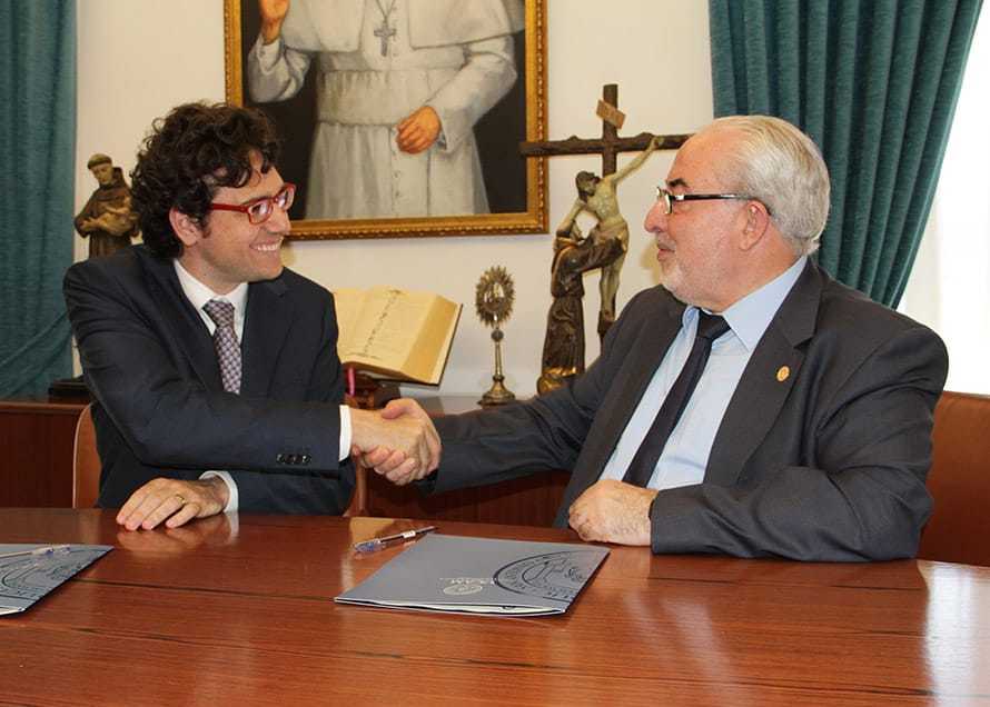 José Luis Mendoza, presidente de la UCAM, y el dirigente de Global Working, suscribían un acuerdo de colaboración que no se ceñirá sólo a la Facultad de Enfermería. Pablo Lanza ha asegurado que estudiantes de otras carreras también tendrán la oportunidad de trabajar fuera de España: “También trabajamos mucho en Alemania. Hay posibilidades para informáticos, ingenieros y profesionales de Educación Infantil”.