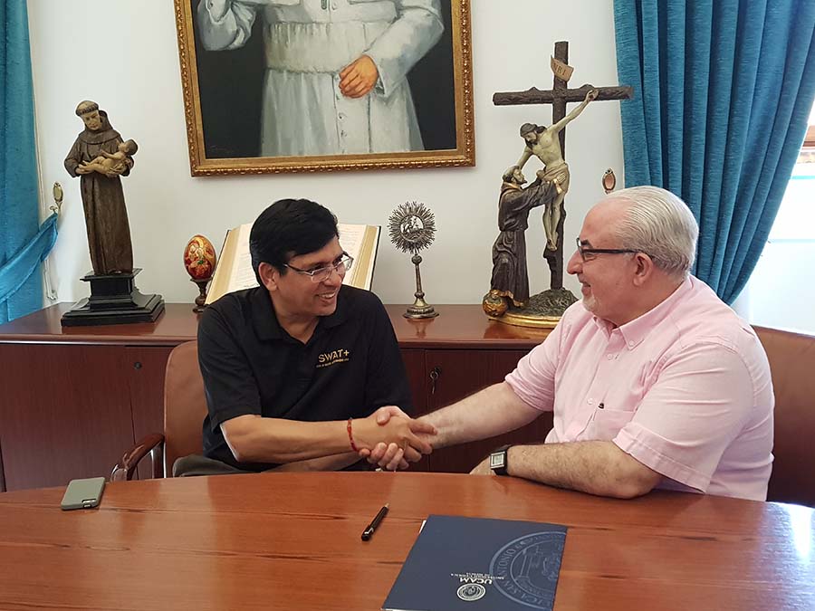 La UCAM y la Texal Agricultural & Mechanical University (TAMU), han firmado esta mañana un convenio de colaboración para promover la investigación entre los profesionales de las áreas de ingeniería relacionadas con las ciencias ambientales que permitirá desarrollar proyectos conjuntos en materia de recursos hídricos y calidad de aguas, así como el intercambio de estudiantes predoctorales entre ambas instituciones. A través de este acuerdo rubricado por José Luis Mendoza, presidente de la UCAM y el catedrático Raghavan Srinivasan, en representación de la TAMU, la Universidad Católica contará con la experiencia investigadora de la Texas A&M, una de las universidades más relevantes del mundo en el área de recursos hídricos (puesto 9 en el mundo) y en los estudios de Ingeniería (17 en el mundo), según publica el Academic Ranking of World Universities (Shanghai Ranking).