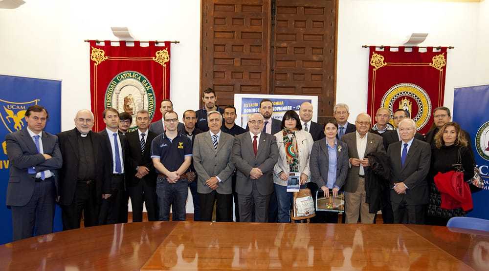 A la suma de cada una de las taquillas, la UCAM ha hecho una aportación adicional para llegar hasta los 20.000 euros en cada caso. Los partidos solidarios han sido: UCAM Murcia CF – Cádiz (para la Asociación de Enfermedades Raras D’Genes y la Asociación Española de ELA), UCAM Murcia CF – Real Jaén (para Proyecto Hombre), UCAM Murcia CF – Marbella (para Jesús Abandonado) y UCAM Murcia CB – Estudiantes (para la Asociación Española Contra el Cáncer). Además, a través del servicio de Voluntariado de la universidad, también se ha ofrecido ayuda para cubrir las necesidades que vayan surgiendo. Además de los representantes de cada una de las asociaciones, han estado presentes en el acto los capitanes, entrenadores y directivos de ambos equipos: José Ángel Antelo, Diego Ocampo, Alejandro Gómez y José Miguel Garrido, por el UCAM Murcia CB; y Ángel Robles, Eloy Jiménez y Alejandro Santos, por el UCAM Murcia CF. Pablo Rosique, director del Servicio de Actividades Deportivas de la UCAM, también ha estado presente.