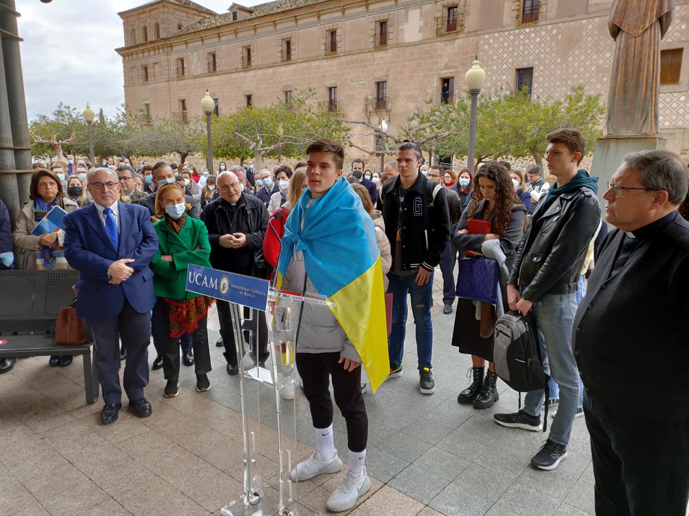 José Luis Mendoza, presidente de la UCAM, ha recordado que en la Universidad hay una comunidad de alumnos ucranianos que van a ser becados para que finalicen sus estudios de forma gratuita, y se les va a ayudar para que puedan reunirse con sus familiares en Murcia: “Vamos a entregarnos en cuerpo y alma a esta misión de ayudar y de servir, al tiempo que deseamos que se resuelva esta situación por el bien de la humanidad”.