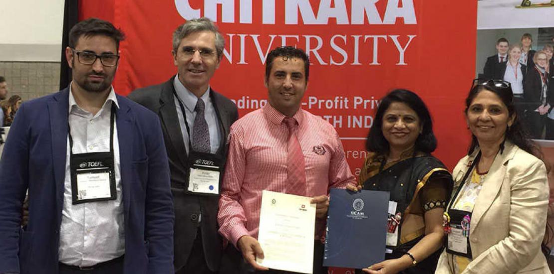 Se trata de la tercera edición en la que participa la UCAM, que ha acudido representada por José Luis Mendoza, director de Relaciones Institucionales; Pablo Blesa, vicerrector de Relaciones Internacionales, y Samuel Mendoza, director del área TIC y Multimedia, entre otros.