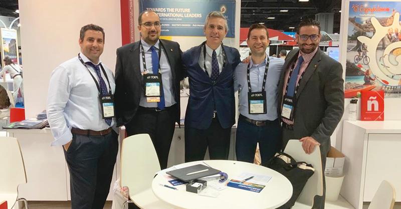 La Universidad Católica de Murcia ha reforzado su apuesta por la internacionalización con su quinta participación consecutiva en NAFSA, la feria de universidades más importante del mundo, celebrada este año en Washington (EEUU). Una expedición compuesta por cinco integrantes del área internacional, encabezada por Pablo Blesa, vicerrector de Relaciones Internacionales de la UCAM, se ha desplazado en representación de la Universidad.