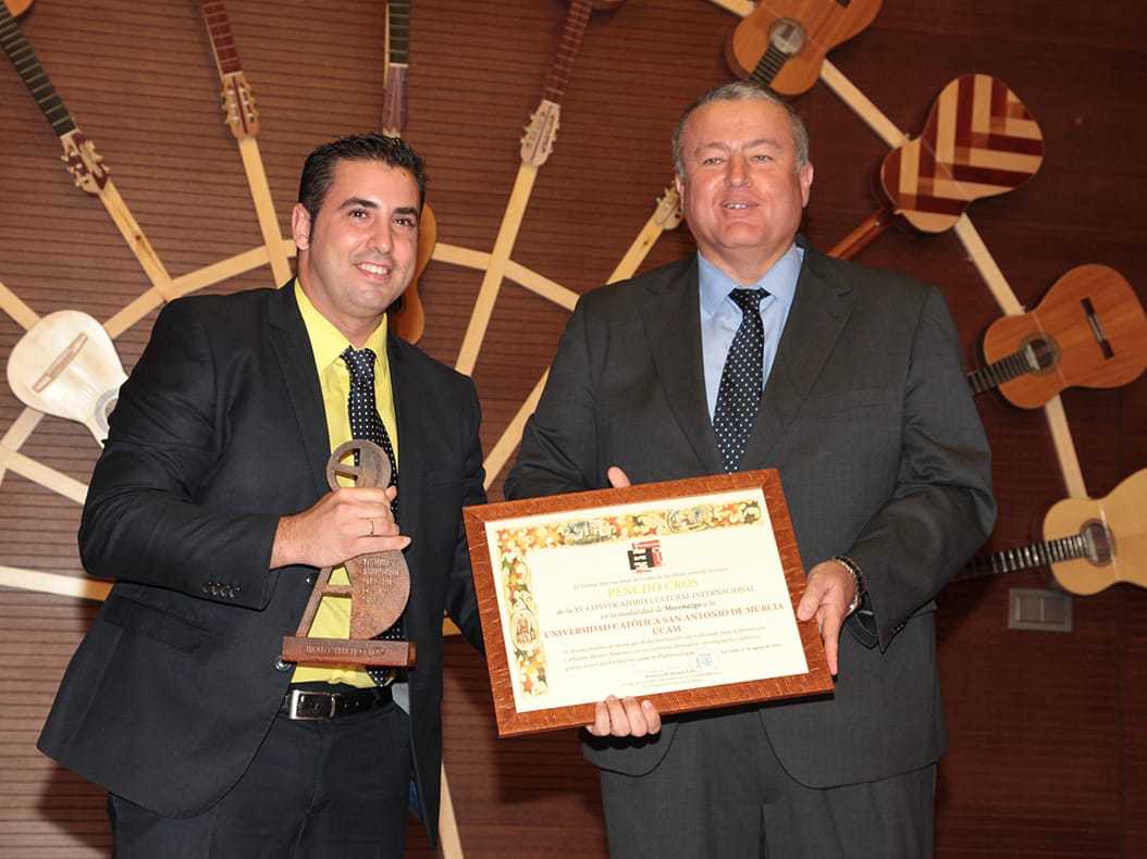 La Universidad Católica San Antonio ha sido galardonada en el Festival del Cante de las Minas con el Trofeo Pencho Cros en la categoría de 'Mecenazgo', reconociendo así la labor de apoyo a la cultura que la UCAM viene realizando desde su nacimiento en 1996. La Fundación Cante de las Minas ha querido reconocer así las numerosas iniciativas que la entidad universitaria lleva a cabo en la Región de Murcia destacando la creación de la Cátedra Internacional de Flamencología, con Estrella Morente como directora. El premio fue recogido por José Luis Mendoza García, director de Relaciones Institucionales de la UCAM.