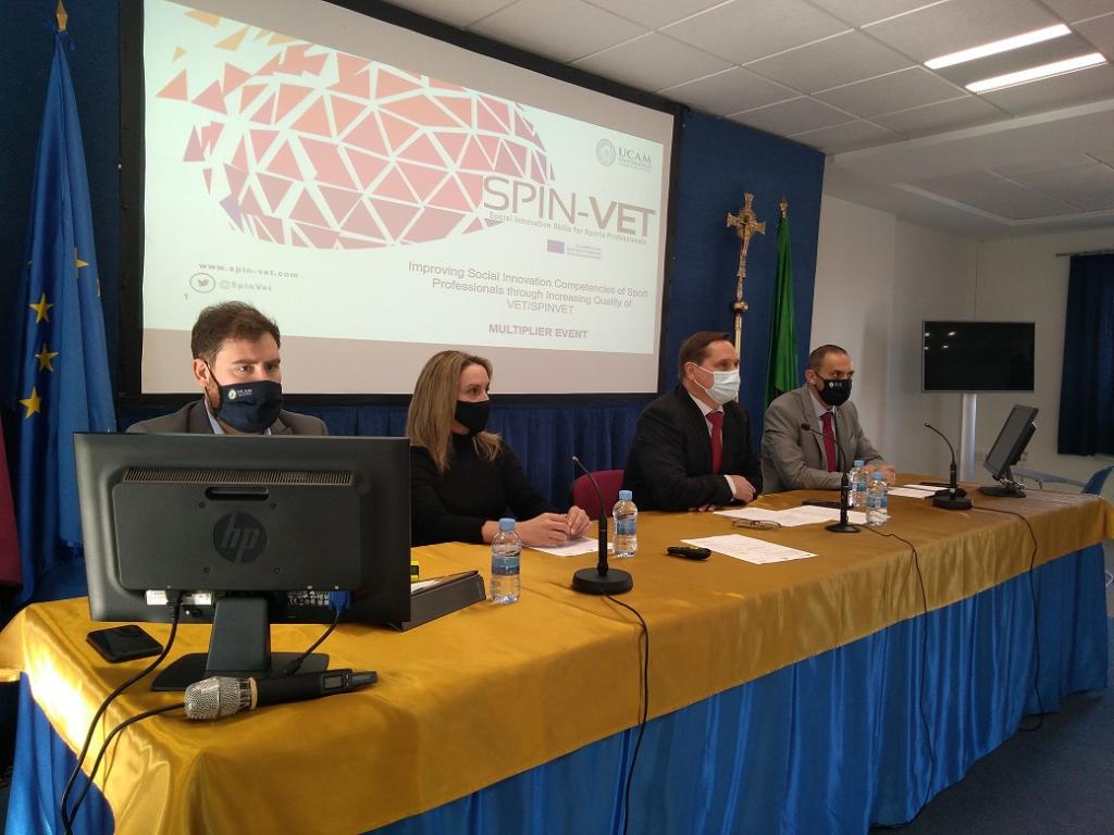 La Facultad de Deporte de la Universidad Católica San Antonio ha presentado en el Campus de Los Dolores la web portal.spin-vet.com, que se ha desarrollado dentro del proyecto europeo SPIN-VET, en el que participan la organización noruega Furim Institute, la asociación deportiva polaca MOBAD y la universidad rumana UNEFS, además de la UCAM.