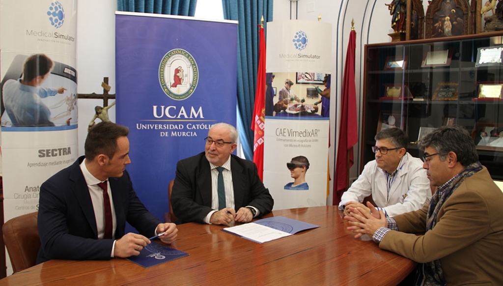 La institución murciana ha firmado un convenio de colaboración con la empresa Medical Simulator que permitirá sumar nuevo material a los simuladores de esta compañía con los que ya cuenta la Universidad.