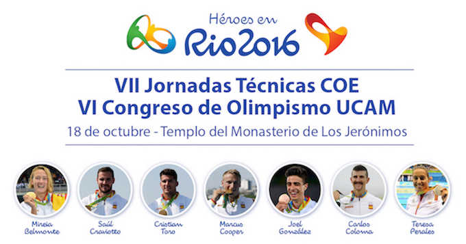 Las ‘VII Jornadas Técnicas del Comité Olímpico Español – VI Congreso de Olimpismo UCAM’ llegan el martes 18 de octubre al Campus de los Jerónimos de la Universidad Católica de Murcia con siete de los medallistas españoles en los pasados Juegos de Río 16. Los deportistas y sus entrenadores compartirán con los estudiantes universitarios su experiencia olímpica del pasado verano, en la que se convirtieron en héroes del.