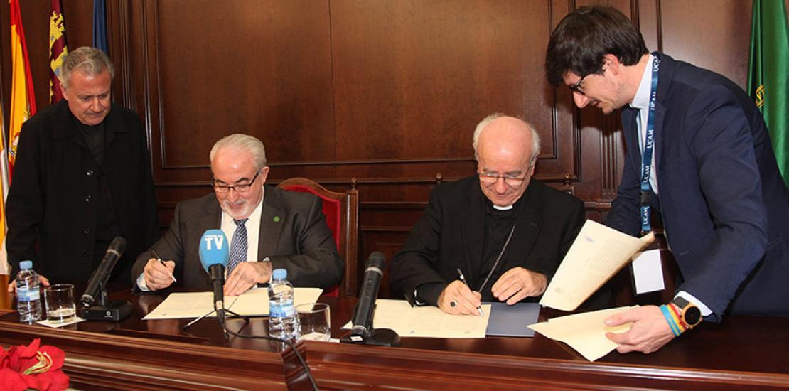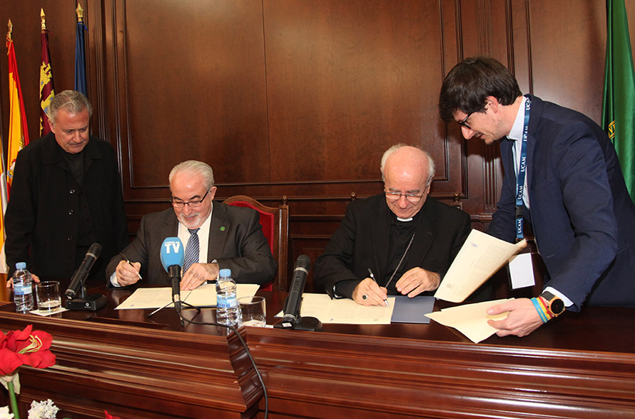 “Con este acuerdo entre la UCAM y el Pontificio Instituto Teológico Juan Pablo II iniciamos un proyecto común para que el pensamiento del Papa Francisco llegue a todo el mundo” ha afirmado monseñor Vicenzo Paglia durante la firma del convenio celebrada esta mañana en el Campus de Los Jerónimos. De hecho, contempla, entre otras cosas, como compromisos especiales de la UCAM, la creación de la Biblioteca Digital “Amoris Laetitia” y la posibilidad de atribuir validez civil a los grados académicos en Ciencias del Matrimonio y de la Familia a través de la recién constituida Facultad de Ciencias Humanas, Canónicas y Religiosas, lo que ha sido calificado por el Presidente de la UCAM, José Luis Mendoza, como “acontecimiento histórico”.