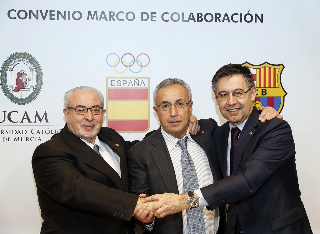 La Universidad Católica de Murcia materializará desde enero de 2020 su alianza con el Fútbol Club Barcelona, uno de los principales clubes deportivos del mundo. El pasado mes de febrero los presidentes de ambas instituciones, José Luis Mendoza (UCAM) y Josep Maria Bartomeu (FCB), junto al del Comité Olímpico Español, Alejandro Blanco, firmaban en Madrid un acuerdo de colaboración que ponía las bases para el proyecto que arranca con el nuevo año y que consiste en que la UCAM se convierte en colaborador del Barça Innovation Hub (BIHUB), proyecto estratégico del club catalán para desarrollar y compartir conocimiento a través de cursos que ofrecen una alta especialización.