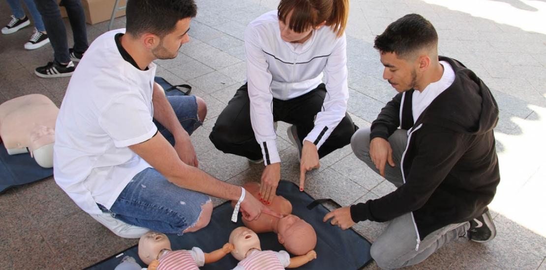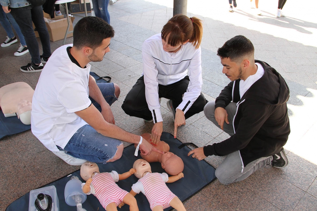 Además, en el marco de la festividad, los estudiantes han organizado unas olimpiadas de Enfermería para que la gente conozca las actividades que realizan los profesionales de la salud en los hospitales y los centros de salud. Pilar Ibarra y Carlos Sánchez son los encargados de organizar estas actividades, “las Olimpiadas de Enfermería están organizadas en tres pruebas: RCP, intubación y vendajes, además de eso tenemos cuatro puestos donde se puede comprobar el grupo sanguíneo y también contamos con un traje geriátrico para sentir como es el día a día de los ancianos y el simulador del parto, además también han venido tres equipos de la Cruz Roja”, explican Pilar y Carlos.