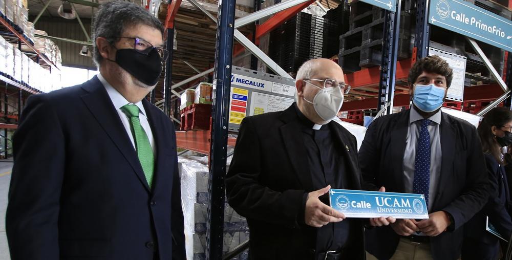 La UCAM ha recibido la placa correspondiente a la calle con la que cuenta en la sede del Banco de Alimentos del Segura, fruto de la colaboración que mantiene desde hace años con esta entidad social.