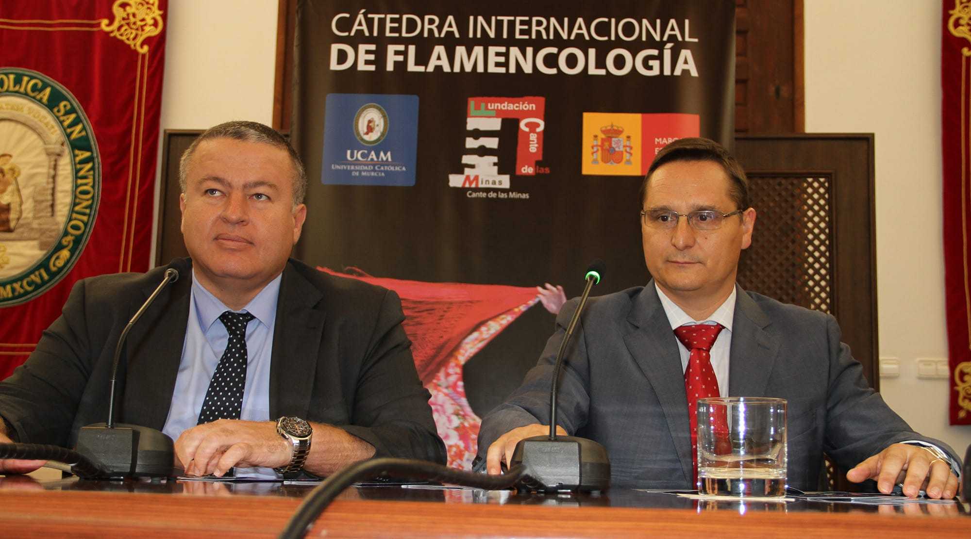 La Universidad Católica San Antonio y la Fundación Cante de las Minas han puesto en marcha los cursos de la Escuela de Arte Flamenco, cuyo periodo de inscripción ya está abierto. Francisco Bernabé, alcalde de La Unión y presidente ejecutivo de la Fundación Cante de las Minas, y Antonio Sánchez Pato, decano de la Facultad de Deporte de la UCAM, han sido los encargados de ofrecer los puntos clave de estos cursos que se enmarcan en la Cátedra Internacional de Flamencología que dirige Estrella Morente.