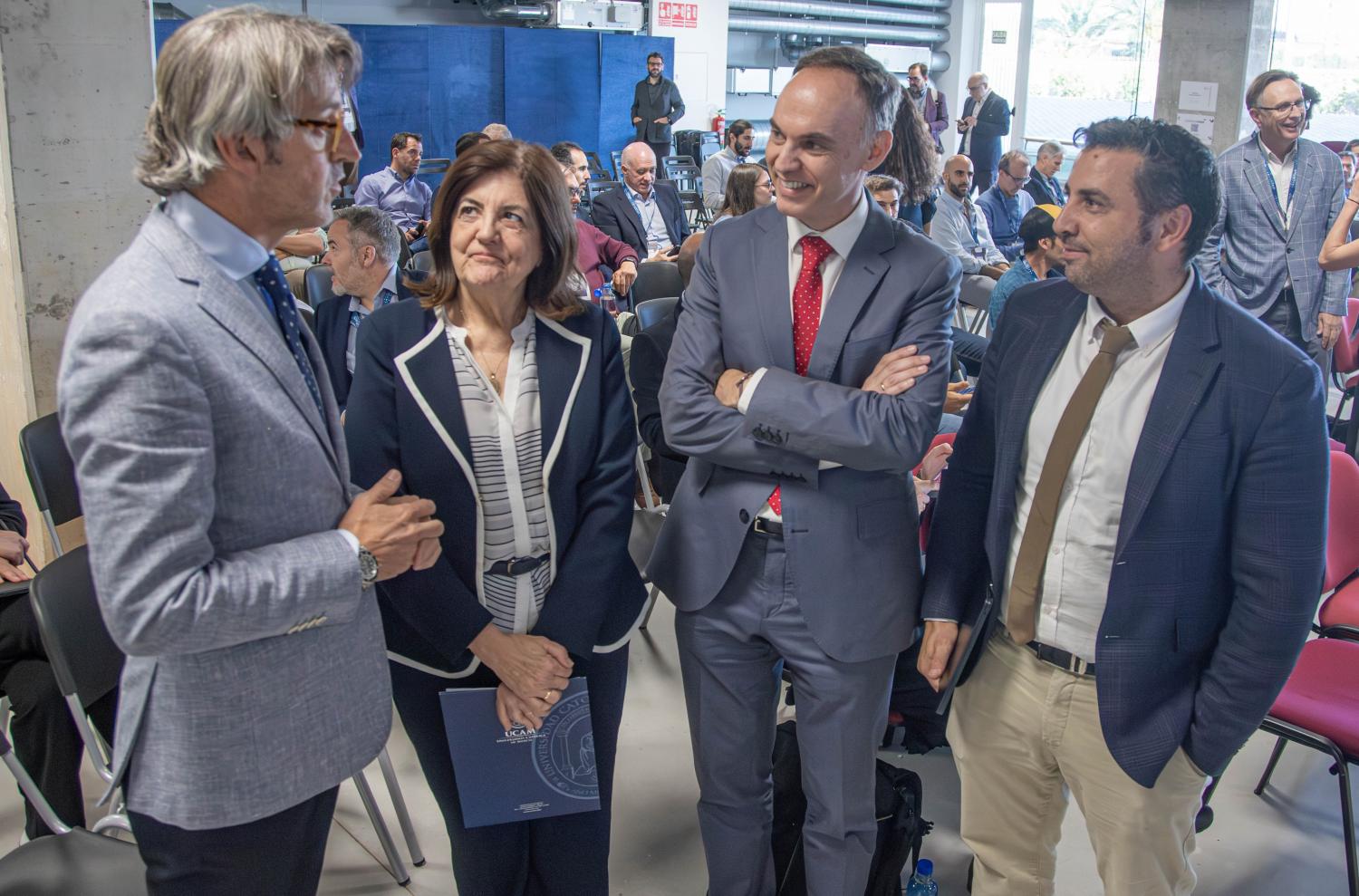 En la inauguración del Encuentro han participado María Dolores García, presidenta de la UCAM, y Luis Alberto Marín, consejero de Economía y Hacienda de la Comunidad Autónoma de la Región de Murcia, acompañados por José Luis Mendoza, director general de Relaciones Institucionales de la Universidad, y Carlos Caballero, director de UCAM HiTech.