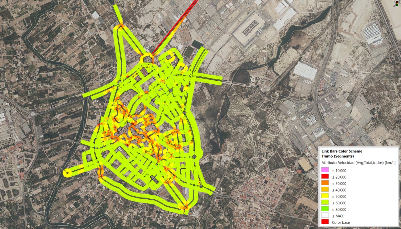 Para ello, se realizó un análisis exhaustivo mediante trabajos de campo, encuestas de movilidad, aforos de tráfico, inventarios de estacionamiento y microsimulaciones con el software PTV Vissim, permitiendo al grupo de investigación identificar problemas como la alta dependencia del coche (73,4% de los desplazamientos), la existencia de congestión en horas punta y las deficiencias en la accesibilidad peatonal. Cabe destacar que el proyecto de simulación se ha llevado a cabo en el Laboratorio de Movilidad de la Región de Murcia, una de las actuaciones de la Cátedra.