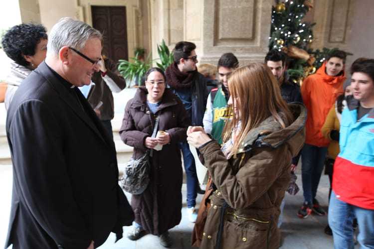 En la mañana de hoy viernes, los alumnos de la Universidad, que ayer participaron en una cena solidaria a favor de la misión que realiza la UCAM en Perú, han felicitado la Navidad en el Palacio Episcopal al obispo de la Diócesis de Cartagena, José Manuel Lorca Planes.