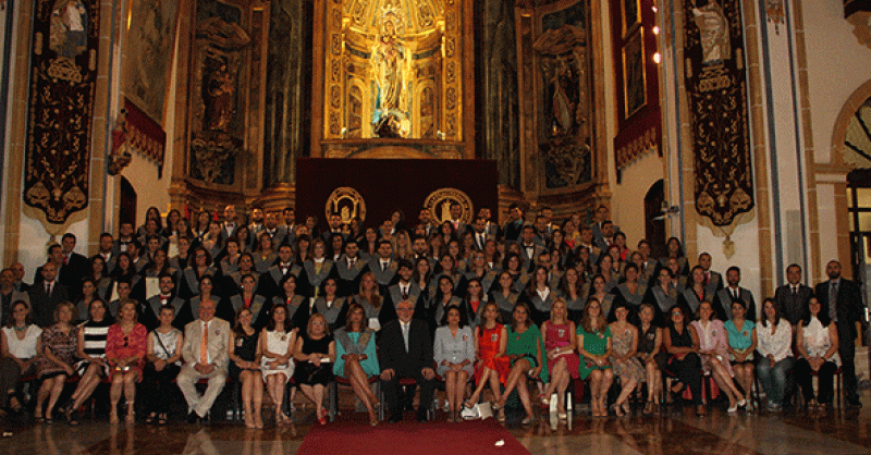 El Templo del Monasterio de Los Jerónimos ha acogido esta mañana el Acto de Imposición de Becas y Entrega de Diplomas a los estudiantes del grupo DE de la IV Promoción del Grado en Enfermería de la Universidad Católica de Murcia.