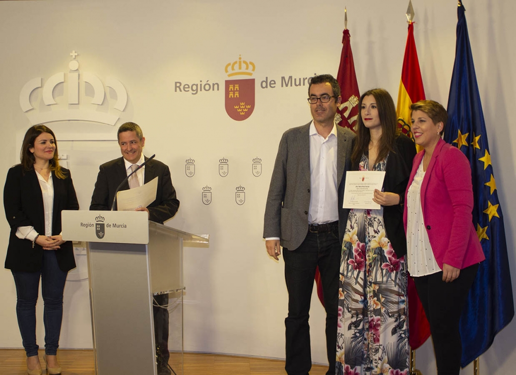 Fruto de esta tesis doctoral Marta Pérez ha recibido esta mañana de manos de Noelia Arroyo, consejera de Transparencia, Participación y Portavoz de la CARM, el reconocimiento a la mejor investigación universitaria en el ámbito de transparencia, en un acto celebrado hoy, en el Palacio de San Esteban de Murcia.