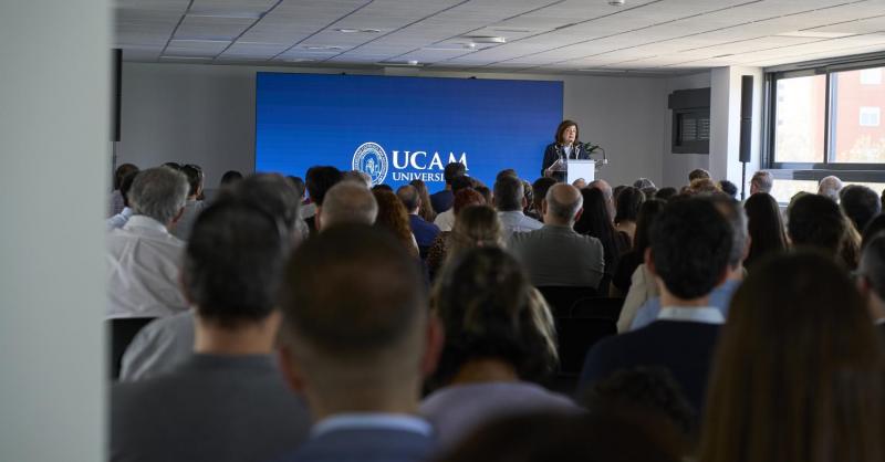 El acto se ha iniciado con la bienvenida institucional en la biblioteca del Campus, en la que la presidenta de la UCAM, María Dolores García Mascarell, ha explicado que “nuestra misión es formar excelentes profesionales y personas íntegras, con un compromiso real con la sociedad". Se trata de un proyecto reconocido por los rankings internacionales que avalan la calidad educativa de la UCAM, que transfiere ahora a su Campus de Madrid. “Es una obra viva, con miles de egresados y un legado que continúa en cada alma, cada proyecto, cada alumno que decide formar parte de esta Universidad”. Con esta motivación, la presidenta ha animado a los presentes a unirse a este sueño del fundador, José Luis Mendoza, materializado ahora en la capital de España. “Durante estos 29 años, miles de familias nos han confiado lo más valioso que tienen: la educación de sus hijos”, ha precisado. Amparados en esta trayectoria, ha prometido que “vamos a estar con vosotros en todo momento, no solo en la formación académica, sino también en el crecimiento personal y humano, ayudando a descubrir el verdadero propósito en la vida”.