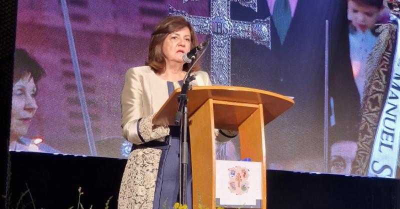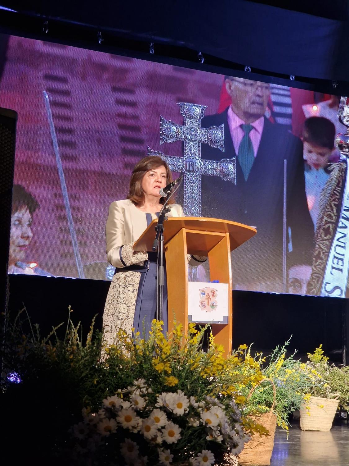 El eje de su pregón fue la Cruz de Cristo que “es un instrumento de salvación para todos los que creen y que ilumina y transforma nuestras vidas”, aseguró. La pregonera también tuvo un recuerdo muy especial para los damnificados por los conflictos bélicos en el mundo, pidiendo, por intercesión de la Vera Cruz de Caravaca, que “la paz vuelva a todos los territorios en guerra”.