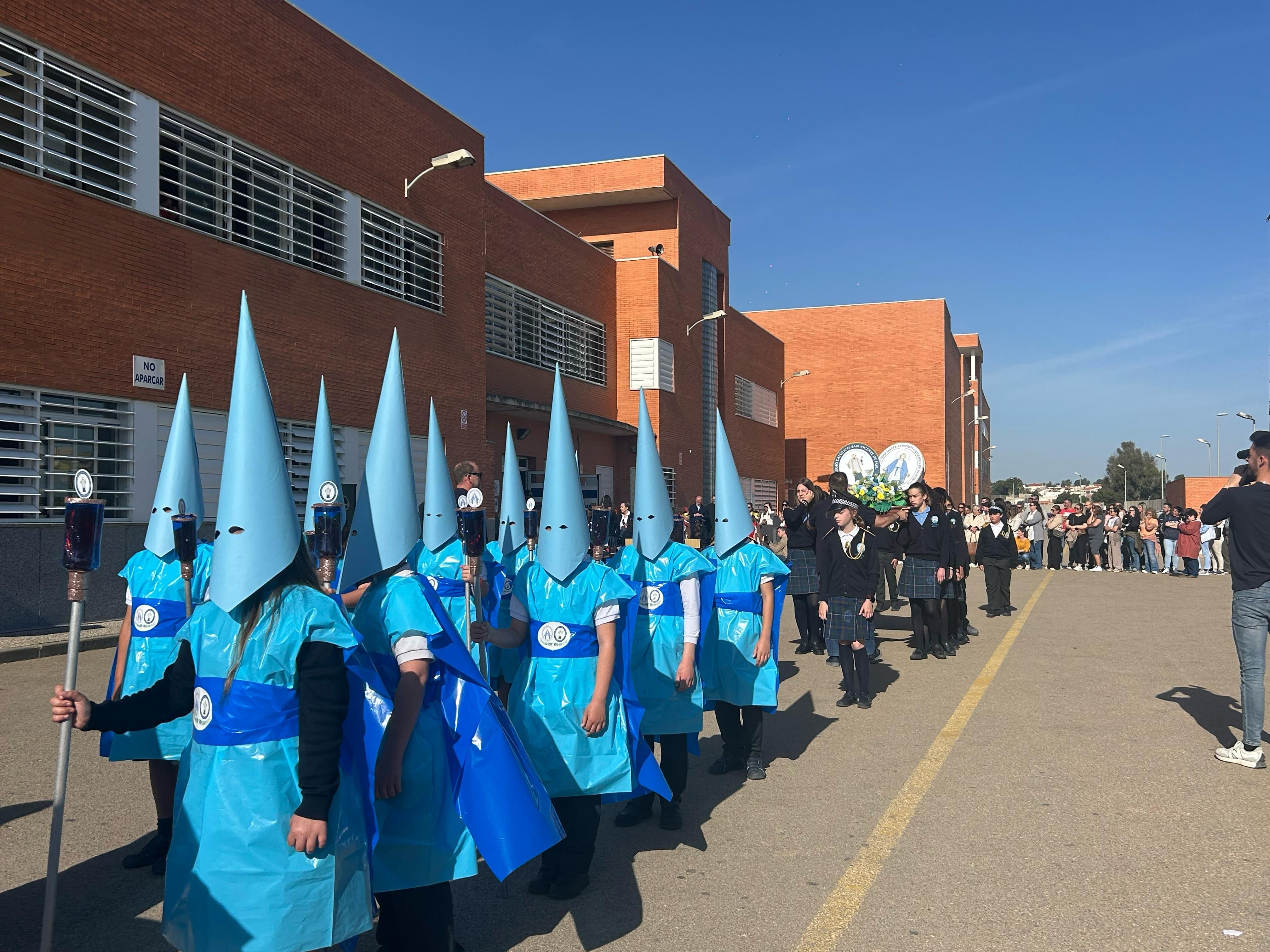 Tras el pregón, el colegio ha celebrado su tradicional Procesión Pasional, un evento que, desde su primera edición en 2023, ha ido creciendo y convirtiéndose en un referente en la comunidad educativa. Este año, más de 800 niños y adolescentes, desde Infantil hasta Primaria, se han unido al cortejo pasional, al que también se han sumado los alumnos de Secundaria como portapasos y músicos.