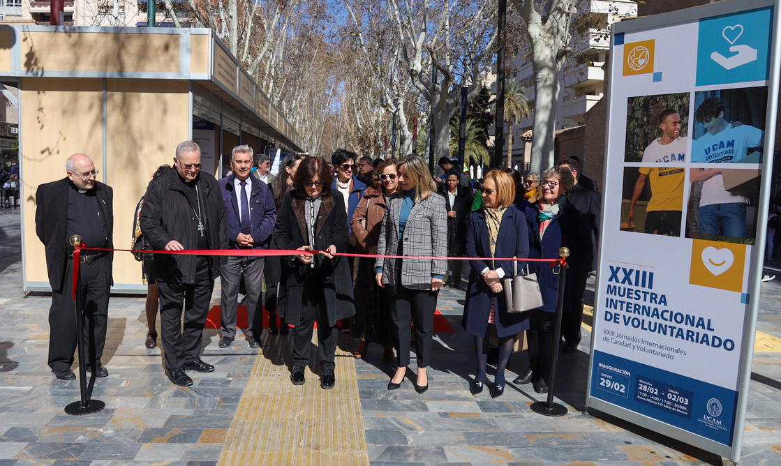 Con el objetivo de visibilizar la acción que desarrollan las entidades sociales en favor de los más desfavorecidos, María Dolores García, presidenta de la UCAM, acompañada por monseñor José Manuel Lorca Planes, obispo de la Diócesis de Cartagena; Concepción Ruiz, consejera de Política Social, Familias e Igualdad de la CARM, y Antonio Alcaraz, vicerrector de Extensión Universitaria, han inaugurado esta mañana, la XXIII Muestra Internacional de Voluntariado, que organiza la Universidad Católica de Murcia. En ella se congregan más de 100 asociaciones de diferentes ámbitos como el sanitario, educativo, cooperación internacional, migración, y entidades caritativas de la Iglesia Católica.