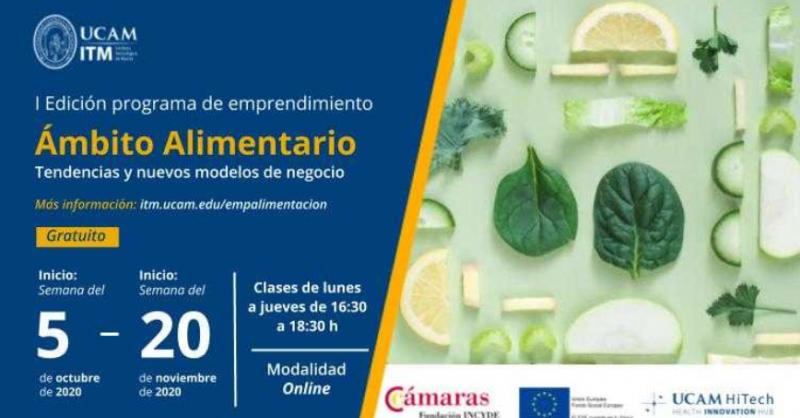 Se trata de la primera edición de "Emprendimiento en el ámbito Alimentario: tendencias y nuevos modelos de negocio" dirigido a innovadores del sector alimentario que buscan desarrollar sus planes de negocio a través de una formación especializada en este sector de la mano de la UCAM y de consultores de la Fundación Incyde que cuentan con una amplia experiencia profesional, en el marco del convenio establecido para este tipo de iniciativas de emprendimiento que, desde su creación en 2014, el Instituto Tecnológico de la UCAM está llevando a cabo en la Universidad Católica de Murcia.