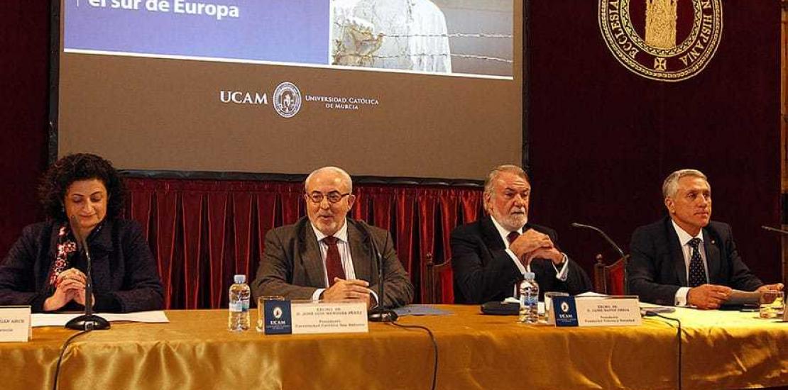 En el acto inaugural también intervinieron José Luis Mendoza, presidente de la Universidad; María Dolores Pagán, consejera de Presidencia, y Alberto Gallego, coronel del Ejército del Aire (Res.) y profesor colaborador de la institución. Mendoza recalcó durante su intervención la necesidad de recuperar las raíces cristianas de Europa. “Este relativismo moral que invade Europa la lleva a la destrucción social, moral, y yo creo que con un futuro incierto; por eso es muy importante la labor de las universidades, y esta educación en valores que damos en la UCAM es fundamental. Por su parte, la consejera de Presidencia aseguró que el terrorismo precisa de una respuesta unánime, “sólo la unidad de una nación puede hacer frente a esto”.