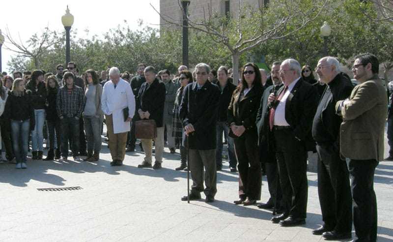 La UCAM guardó un minuto de silencio por las víctimas del terrorismo el pasado jueves 11 de marzo, con motivo del Día Europeo en recuerdo de estas personas que han sido golpeadas por la barbarie terrorista.Al acto asistieron cientos de estudiantes junto al presidente de la UCAM, José Luis Mendoza, el director del Instituto Internacional de Caridad y Voluntariado, Antonio Alcaraz, así como el delegado en la Región de Murcia de la Asociación de Víctimas del Terrorismo (AVT), Alejandro Urteaga. El presidente de la UCAM, José Luis Mendoza, efectuó un breve discurso en el que destacó que “desde la Universidad nos unimos a todas las víctimas del terrorismo, con el deseo de que acabe ya esta lacra”. Del mismo modo, José Luis Mendoza hizo una oración por las víctimas y sus familiares. En el acto también intervinieron dos alumnas de la Universidad, que en representación del resto de estudiantes, leyeron varias frases de apoyo a las víctimas, en las que reconocían la fuerza de estas personas para seguir hacia delante.Por su parte, el delegado en la Región de Murcia de la AVT, Alejandro Arteaga, animó a los jóvenes a movilizarse en apoyo de las víctimas.Además, cabe destacar que por la tarde, se celebró en el Templo del Monasterio de Los Jerónimos, una misa por las víctimas del terrorismo y sus familias.