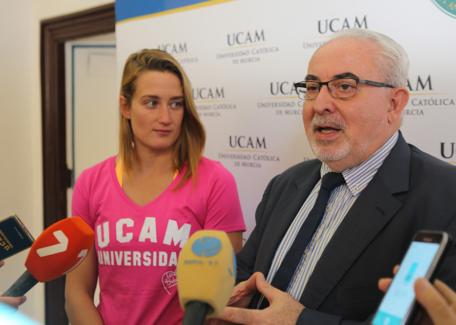 José Luis Mendoza, presidente de la UCAM, ha recalcado la importancia de la figura de Mireia Belmonte como ejemplo para todos de que se puede competir al máximo nivel y seguir estudiando: “No sólo consigue éxitos deportivos, también está muy implicada en el estudio porque quiere tener su carrera. Es un gran sacrificio para una deportista de su talla obtener un título universitario ya que entrena muchas horas al día. Está dando un testimonio muy importante como deportista y como persona”.