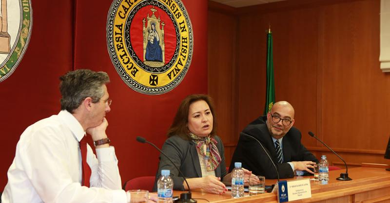 La subidrectora de la Escuela Diplomática de España, Miriam Álvarez, ha impartido esta mañana una charla a los estudiantes de la UCAM sobre la carrera diplomática